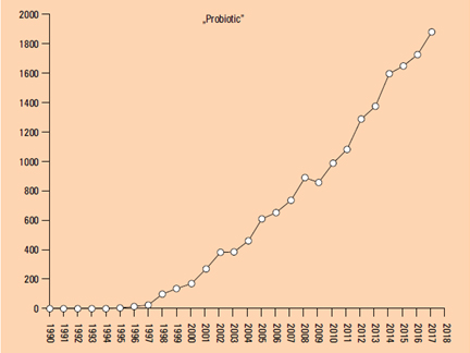 Probiotics are gaining popularity for a reason. Their multidirectional and very beneficial effect on the human body causes that more and more people use them. The data collected in the chart below shows the number of publications on probiotics in the years 1990-2017: