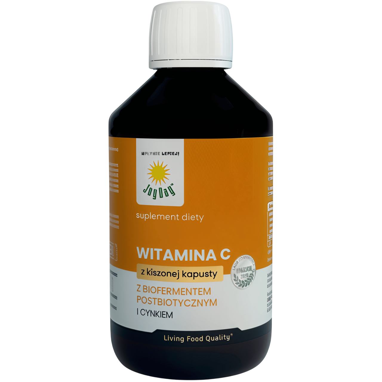 nnowacyjny suplement diety z witaminą C, biofermentem postbiotycznym i cynkiem! Wielokierunkowe wsparcie odporności uzyskane dzięki połączeniu biofermentu postbiotycznego na bazie borówki, czarnej porzeczki i jeżówki, bogatego w postbiotyki wytworzone w procesie fermentacji przez aktywne bakterie probiotyczne, naturalnej witaminy C pozyskanej z kapusty kiszonej oraz cynku. 500 mg witaminy C w dziennej porcji. 11,6 mg cynku w dziennej porcji. Pozytywny wpływ na odporność. Uzupełnienie diety w składniki bioaktywne obecne w borówce, czarnej porzeczce i jeżówce. Wygodne przyjmowanie, dzienna porcja skoncentrowana w małej ilości płynu. Zawiera bioferment postbiotyczny z fermentacji z udziałem bakterii probiotycznych i roślin – borówki wysokiej, czarnej porzeczki i jeżówki pospolitej. Charakteryzuje się świeżym aromatem i porzeczkowym smakiem. Produkt: BEZGLUTENOWY, NIEKLAROWANY, NIEPASTERYZOWANY.